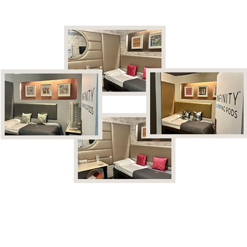 Infinity Sleeping Pods provide a safe and comfortable space to recharge, regroup, and prepare for your travel adventures. Whether you're a weary traveler, a commuter, or a shopper looking for convenience, we've got you covered.
